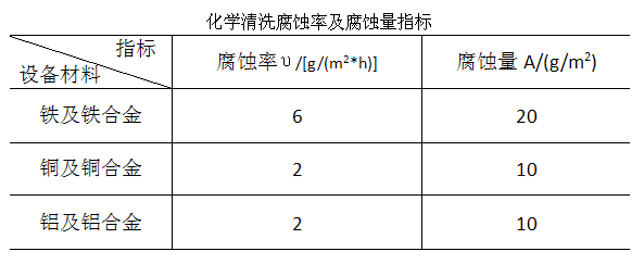 化學(xué)清洗時(shí)金屬腐蝕率和腐蝕量應(yīng)不大于下表指標(biāo)。