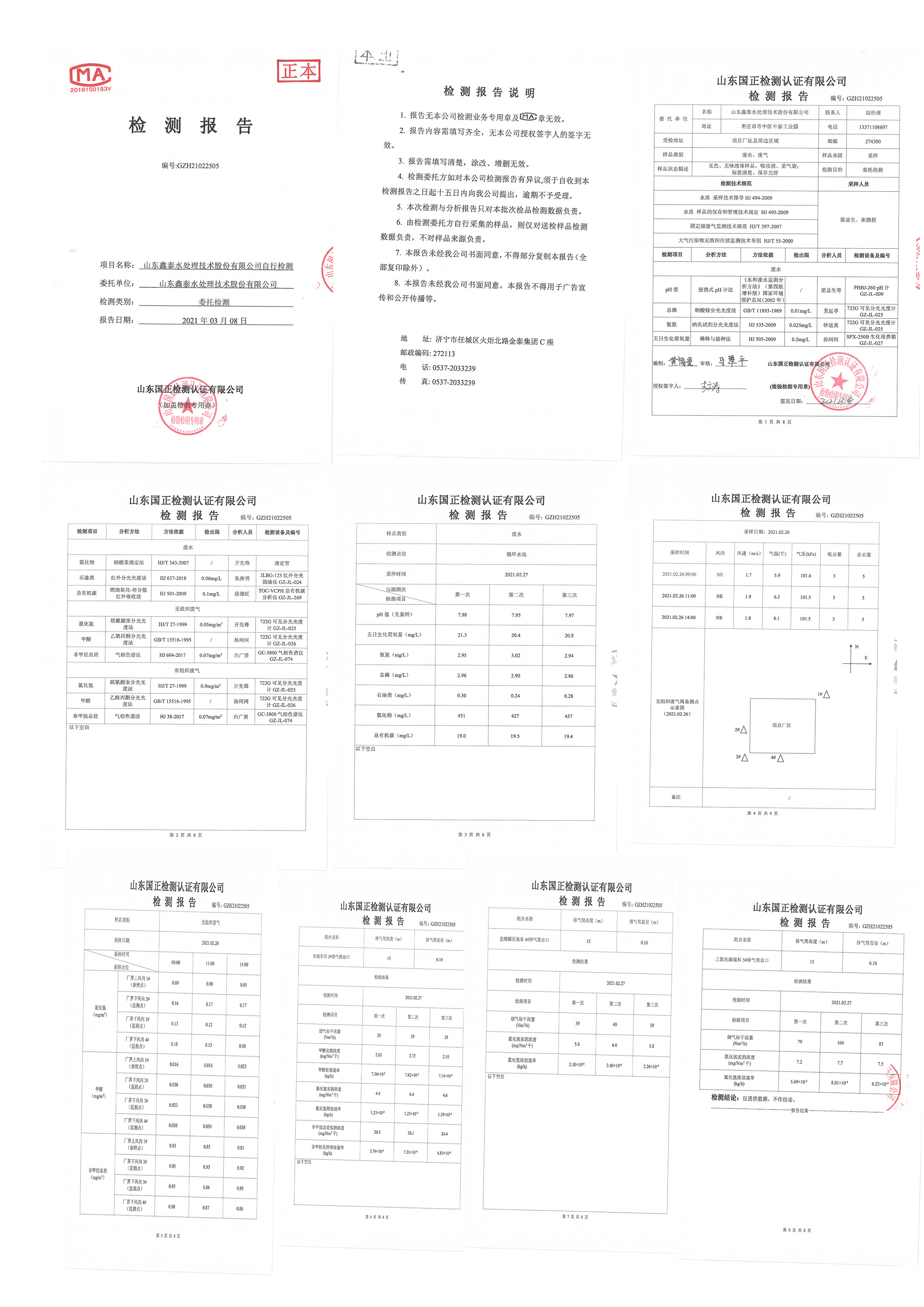 山東鑫泰水處理技術(shù)股份有限公司2021年環(huán)保監(jiān)測(cè)公示